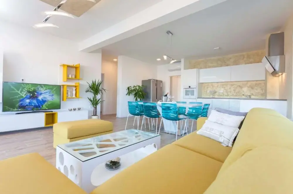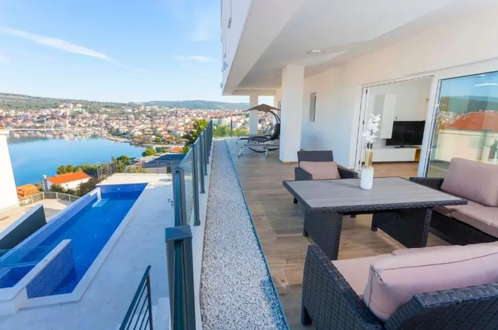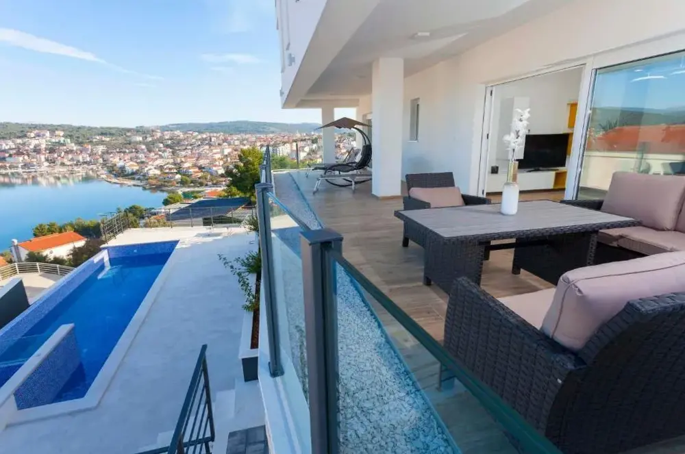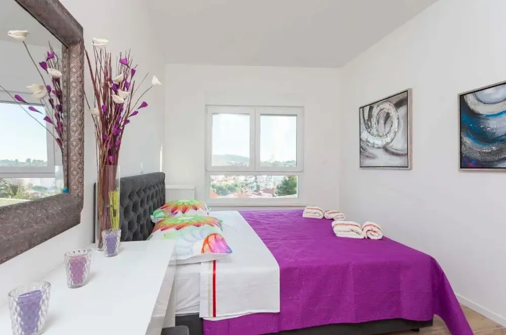 Uit de beschrijving is het moeilijk op te maken: maar er zijn 3 kamers met tweepersoonsbedden, 2 badkamers en 3 toiletten. (dat is genoeg). In zeer mooie staat, perfect uitgeruste keuken, grote gemeenschappelijke ruimte, groot terras. Het zwembad is precies goed, de zonnebank is meer dan genoeg. Het uitzicht is ook erg mooi, de gastheer is super aardig, hij communiceert goed in het Engels. Een aanrader voor 6 personen. Naar onze mening is de prijs voor zoveel mensen goed voor 1 week. Vijf sterren voor alles